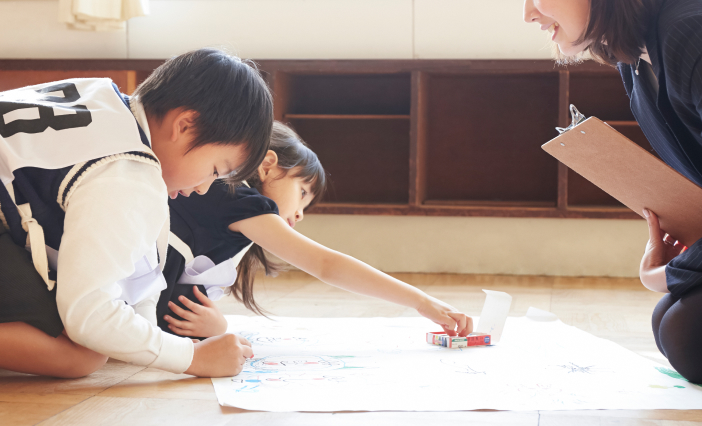 少しずつ慣れていただけるよう、無理なくサポートいたします。また、幼児の特性を活かした独自のカリキュラムとなっておりますので、様々な活動を交えながら楽しく学んでいただけます。