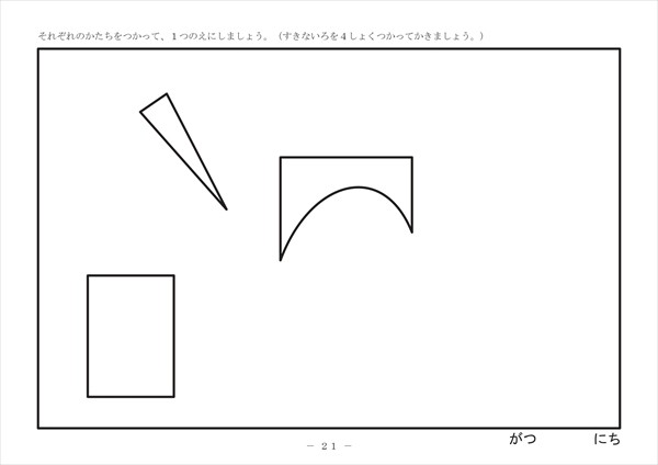 5才 1,540円(税込) 小学校受験に向けて、より実践的な練習ができる教材です。『課題画・想像画』では、与えられた図や条件を使って絵を描く問題に取り組みます。 44 課題画・想像画2 quantity — もしくは — カートに入れる カテゴリー 領域 巧緻性 品番 TT-44 対象年齢 5才 Description Description 小学校受験に向けて、より実践的な練習ができる教材です。『課題画・想像画』では、与えられた図や条件を使って絵を描く問題に取り組みます。 一覧に戻る次の商品へ Related products 43 指示の聞き取り1 1,540円(税込) カートに入れる 5 つり合い 置き換え2 1,540円(税込) カートに入れる 1 鏡図形 1,540円(税込) カートに入れる 35 推理あそび2 1,540円(税込) カートに入れる