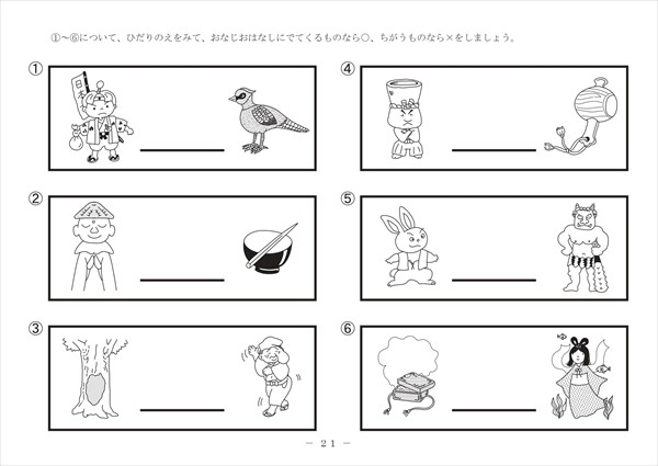 5才 1,540円(税込) 小学校受験に向けて、より実践的な練習ができる教材です。『昔話』では、図形が示す昔話を理解して答える問題に取り組みます。 29 昔話 quantity — もしくは — カートに入れる カテゴリー 領域 知識 品番 TT-29 対象年齢 5才 Description Description 小学校受験に向けて、より実践的な練習ができる教材です。『昔話』では、図形が示す昔話を理解して答える問題に取り組みます。 一覧に戻る次の商品へ Related products 40 理科的常識2 植物・生き物 1,540円(税込) カートに入れる 8 上から見た絵 1,540円(税込) カートに入れる 26 条件推理・魔法の箱 1,540円(税込) カートに入れる 24 系列 1,540円(税込) カートに入れる