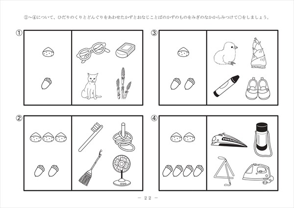 5才 1,540円(税込) 小学校受験に向けて、より実践的な練習ができる教材です。『言葉の数』では、図が示す言葉の数を使って考える問題に取り組みます。 17 言葉の数 quantity — もしくは — カートに入れる カテゴリー 領域 言語 品番 TT-17 対象年齢 5才 Description Description 小学校受験に向けて、より実践的な練習ができる教材です。『言葉の数』では、図が示す言葉の数を使って考える問題に取り組みます。 一覧に戻る次の商品へ Related products 8 上から見た絵 1,540円(税込) カートに入れる 42 言葉あそび 1,540円(税込) カートに入れる 36 間違い探し 1,540円(税込) カートに入れる 24 系列 1,540円(税込) カートに入れる