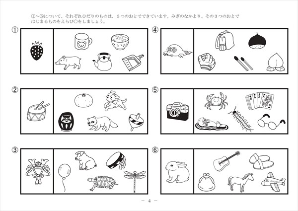 5才 1,540円(税込) 小学校受験に向けて、より実践的な練習ができる教材です。『同頭語・同中語・同尾語』では、図の名前を用いて考える問題に取り組みます。 22 同頭語・同中語・同尾語 quantity — もしくは — カートに入れる カテゴリー 領域 言語 品番 TT-22 対象年齢 5才 Description Description 小学校受験に向けて、より実践的な練習ができる教材です。『同頭語・同中語・同尾語』では、図の名前を用いて考える問題に取り組みます。 一覧に戻る次の商品へ Related products 36 間違い探し 1,540円(税込) カートに入れる 24 系列 1,540円(税込) カートに入れる 32 位置 1,540円(税込) カートに入れる 9 欠所補充 1,540円(税込) カートに入れる