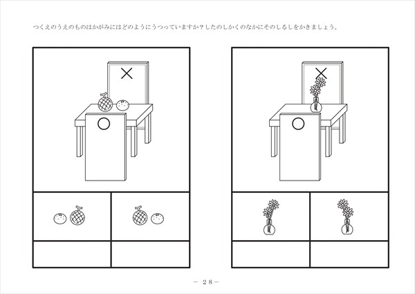 5才 1,540円(税込) 小学校受験に向けて、より実践的な練習ができる教材です。『鏡図形』では、鏡に映った図形がどのように見られるのかを考える問題に取り組みます。 1 鏡図形 quantity — もしくは — カートに入れる カテゴリー 領域 思考 品番 TT-01 対象年齢 5才 Description Description 小学校受験に向けて、より実践的な練習ができる教材です。『鏡図形』では、鏡に映った図形がどのように見られるのかを考える問題に取り組みます。 一覧に戻る次の商品へ Related products 39 四方から見た絵 1,540円(税込) カートに入れる 34 推理あそび1 1,540円(税込) カートに入れる 36 間違い探し 1,540円(税込) カートに入れる 31 ローラー・転がし図形 1,540円(税込) カートに入れる