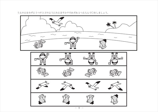 5才 1,540円(税込) 小学校受験に向けて、より実践的な練習ができる教材です。『水に映った絵』では、水面に映る図形を考えて答える問題に取り組みます。 2 水に映った絵 quantity — もしくは — カートに入れる カテゴリー 領域 思考 品番 TT-02 対象年齢 5才 Description Description 小学校受験に向けて、より実践的な練習ができる教材です。『水に映った絵』では、水面に映る図形を考えて答える問題に取り組みます。 一覧に戻る次の商品へ Related products 43 指示の聞き取り1 1,540円(税込) カートに入れる 47 道順 1,540円(税込) カートに入れる 4 つり合い 置き換え1 1,540円(税込) カートに入れる 37 影絵 1,540円(税込) カートに入れる