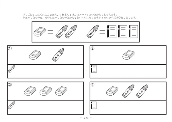 小学校受験に向けて、より実践的な練習ができる教材です。『つり合い 置き換え』では、重さの関係など、見本にある規則を確認して、手を動かして問題に取り組みます。