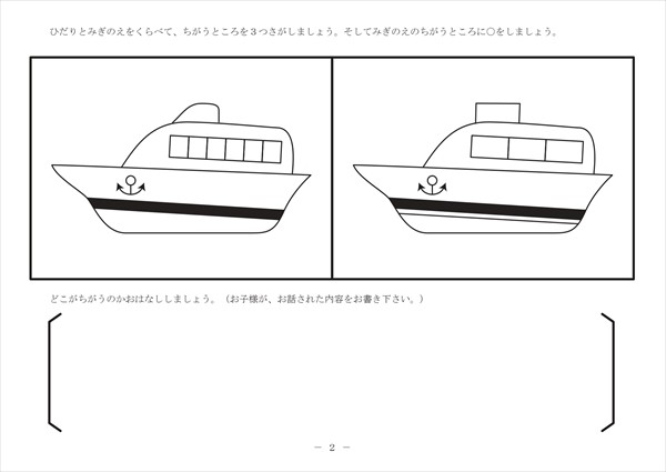5才 1,540円(税込) 小学校受験に向けて、より実践的な練習ができる教材です。『間違い探し』では、2つの絵を見比べて、異なる部分を見つけ出す問題に取り組みます。 36 間違い探し quantity — もしくは — カートに入れる カテゴリー 領域 思考 品番 TT-36 対象年齢 5才 Description Description 小学校受験に向けて、より実践的な練習ができる教材です。『間違い探し』では、2つの絵を見比べて、異なる部分を見つけ出す問題に取り組みます。 一覧に戻る次の商品へ Related products 47 道順 1,540円(税込) カートに入れる 49 推理あそび3 1,540円(税込) カートに入れる 26 条件推理・魔法の箱 1,540円(税込) カートに入れる 4 つり合い 置き換え1 1,540円(税込) カートに入れる