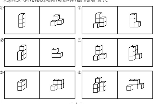 4才 5才 1,540円(税込) 小学校受験に向けて、楽しく学びを深められる教材です。『積木の数』では、積み木がいくつ積まれているのかその数を数える問題に取り組みます。 19 積木の数 quantity — もしくは — カートに入れる カテゴリー 領域 数量 品番 NT-19 対象年齢 4才以上 Description Description 小学校受験に向けて、楽しく学びを深められる教材です。『積木の数』では、積み木がいくつ積まれているのかその数を数える問題に取り組みます。 一覧に戻る次の商品へ Related products 15 同図形発見 1,540円(税込) カートに入れる 1 系列 1,540円(税込) カートに入れる 5 置き換え 1,540円(税込) カートに入れる 8 指示の聞き取り 1,540円(税込) カートに入れる